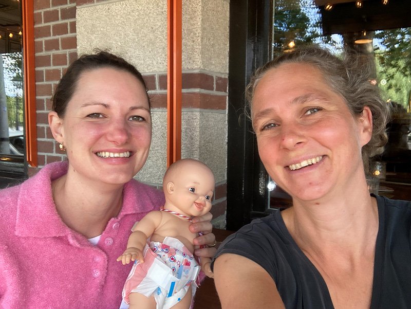 De baby is voor de vakantie overhandigd aan Michaela. Hij had gelijk een nieuw vriendje.