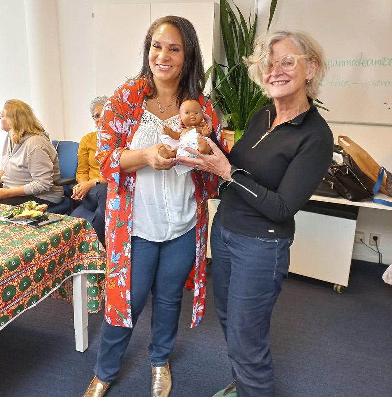 We merkten dat ze ’s nachts niet goed doorsliep ondanks goede flesvoeding en tips van Marije Yassi. Collega Marja Bouma heeft daarom met Puk meegedaan met onze workshop ‘Huilen, Troosten, Slapen’ in de Banne. Samen met zes vaders en moeders mét baby kreeg Marja tips (‘the Happiest Bay Methode’: Harvey Karp) aan de hand van vijf aangeleerde stappen. Als klein pakketje ingebakerd slaapt Puk sindsdien door😊.