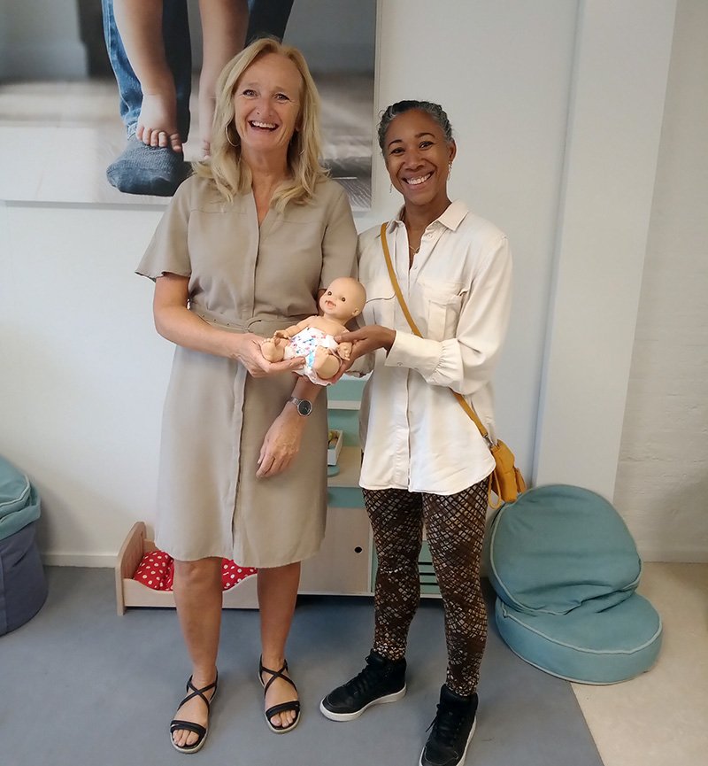 Er komen veel gespreksonderwerpen naar boven waar ze over kunnen praten terwijl ze gymen. Collega jeugdverpleegkundige Inge Feenstra, babyfluisteraar, verleent assistentie. De baby’s doen gezellig mee en worden soms als ‘tool’ gebruikt.