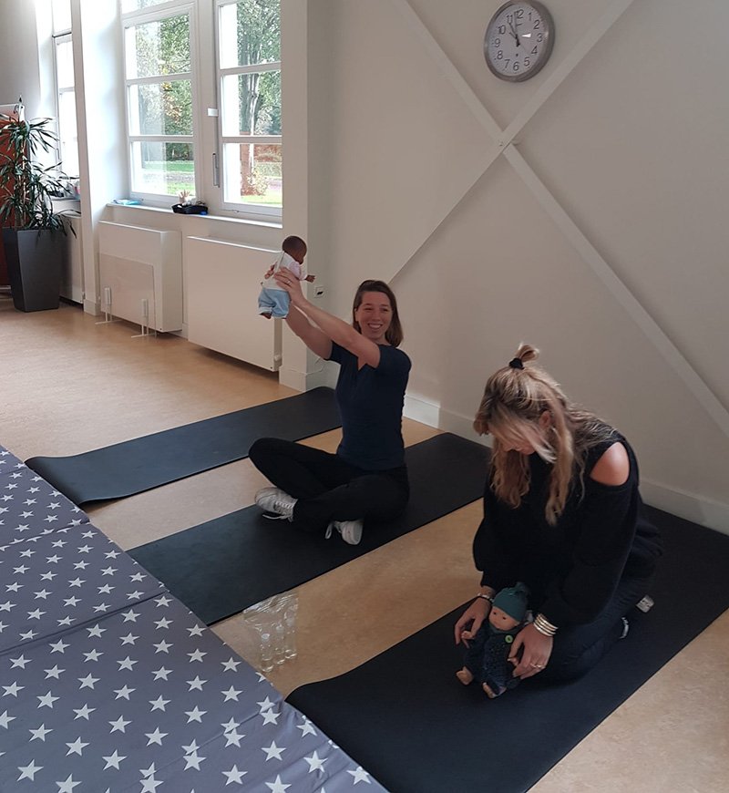 De oefeningen waren heerlijk voor de baby’s en super voor de moeders. De moeders oefenen hun armspieren bij het optillen van de baby, hun buikspieren terwijl ze liggend op een matje opkomen om de baby aan het voeteneind een kus te geven. Ze trainen hun lichaam weer in conditie van voor de zwangerschap. Sarah heeft veel leuke oefeningen voor rug-, bekkenbodem- en buikspieren van de mama’s die samen met de baby’s gedaan kunnen worden.