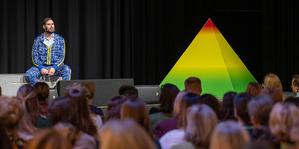 Met een theatersolo MOED nam acteur en docent Mahfoud Mokaddem de deelnemers aan het begin van het congres mee naar de levens waarin leerlingen van mbo 1 ruimte moeten zien te vinden voor school. Zoals Reza, Dayenne en Teun; Mahfoud herkent zich in ze. De verhalen van zijn studenten brengt hij onder hiphop-beats. Over bedreiging, verlokking, moeilijke thuissituaties en negatieve rolmodellen.